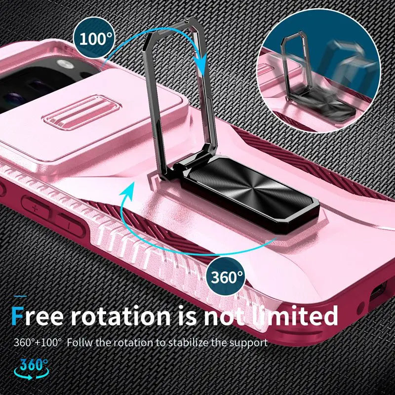 Protect your Google Pixel 9 Pro XL with the FortiGuard Military Grade Ring Holder Case, the ultimate solution for those who need rugged protection and practical functionality. This heavy-duty case combines military-grade durability with a built-in ring holder, magnetic absorption for hands-free use, and a sliding camera lens cover, ensuring your device stays secure and versatile in any situation.