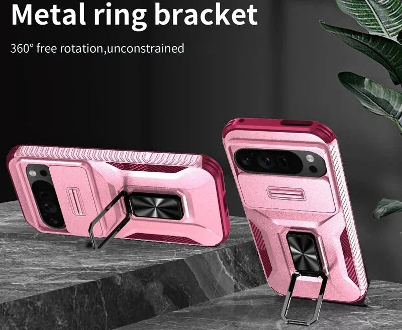 FortiGuard Military Grade Ring Holder Case for Google Pixel 9 Pro XL - Heavy Duty Protection with Camera Lens Slide Cover